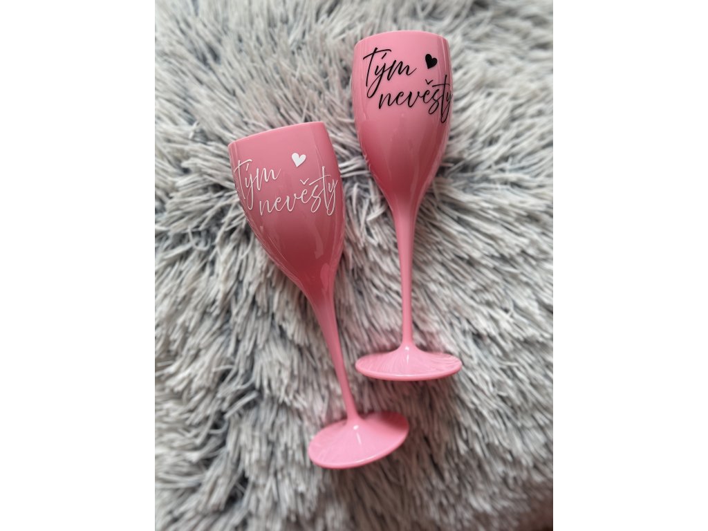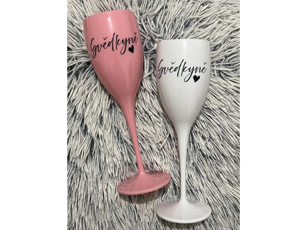 Naše plastové šampusky o objemu 175 ml jsou stvořené pro váš svatební den – lehké, nerozbitné a nádherné v každé z dostupných barev: bílá, černá nebo růžová. Díky elegantnímu potisku s rolí Nevěsta, Ženich, Svědkyně nebo Tým nevěsty bude hned jasné, komu která patří nebo si jednoduše můžete sestavit skleničky dle sebe, jakýkoliv text Vám udělám na přání.